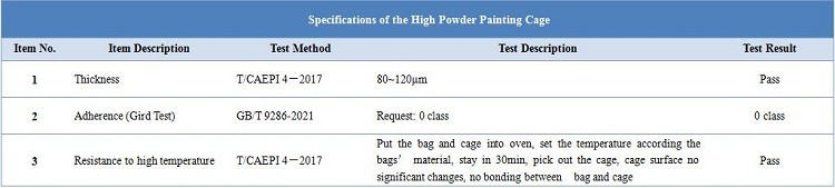 3. Put the cage into painting room, and Huajia?, Alesta? Powder painting treatment, the thickness of painting is about 60μm~120μm