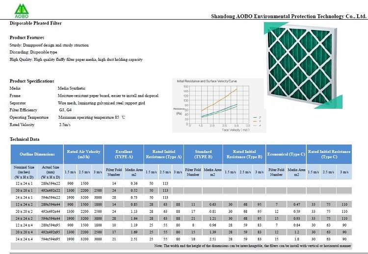 Pleated Panel Air Filter (G3)