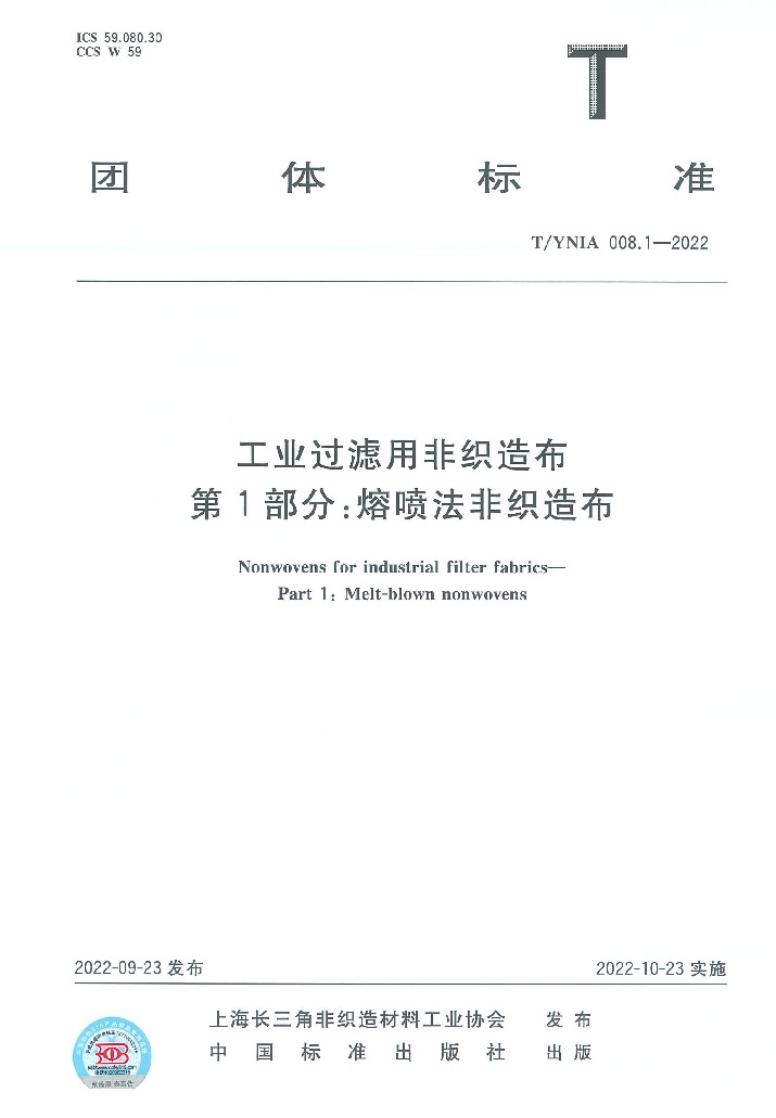 2022年9月23日,T/YNIA 008.1-2022《工業(yè)過濾用非織造布 第一部分 熔噴法非織造布》由上海長三角非織造材料工業(yè)協(xié)會權(quán)威發(fā)布,并于2022年10月23日起實施。山東奧博環(huán)??萍加邢薰緸橹饕瓿蓡挝?/span>。