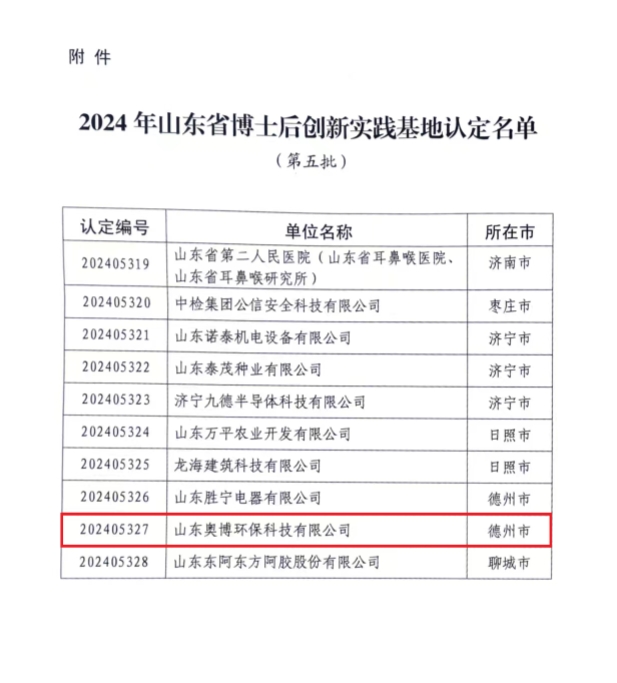 根據(jù)《山東省博士后創(chuàng)新實(shí)踐基地管理辦法》(魯人社字〔2020〕91號(hào))有關(guān)規(guī)定,認(rèn)定山東奧博環(huán)??萍加邢薰緸樯綎|省創(chuàng)新實(shí)踐基地,授予“山東省博士后創(chuàng)新實(shí)踐基地”牌匾。