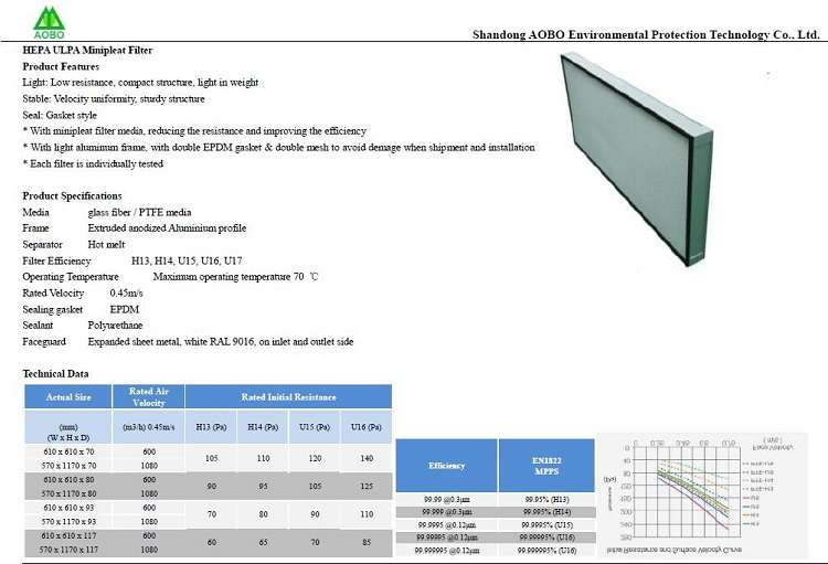 HEPA ULPA Minipleat Filter